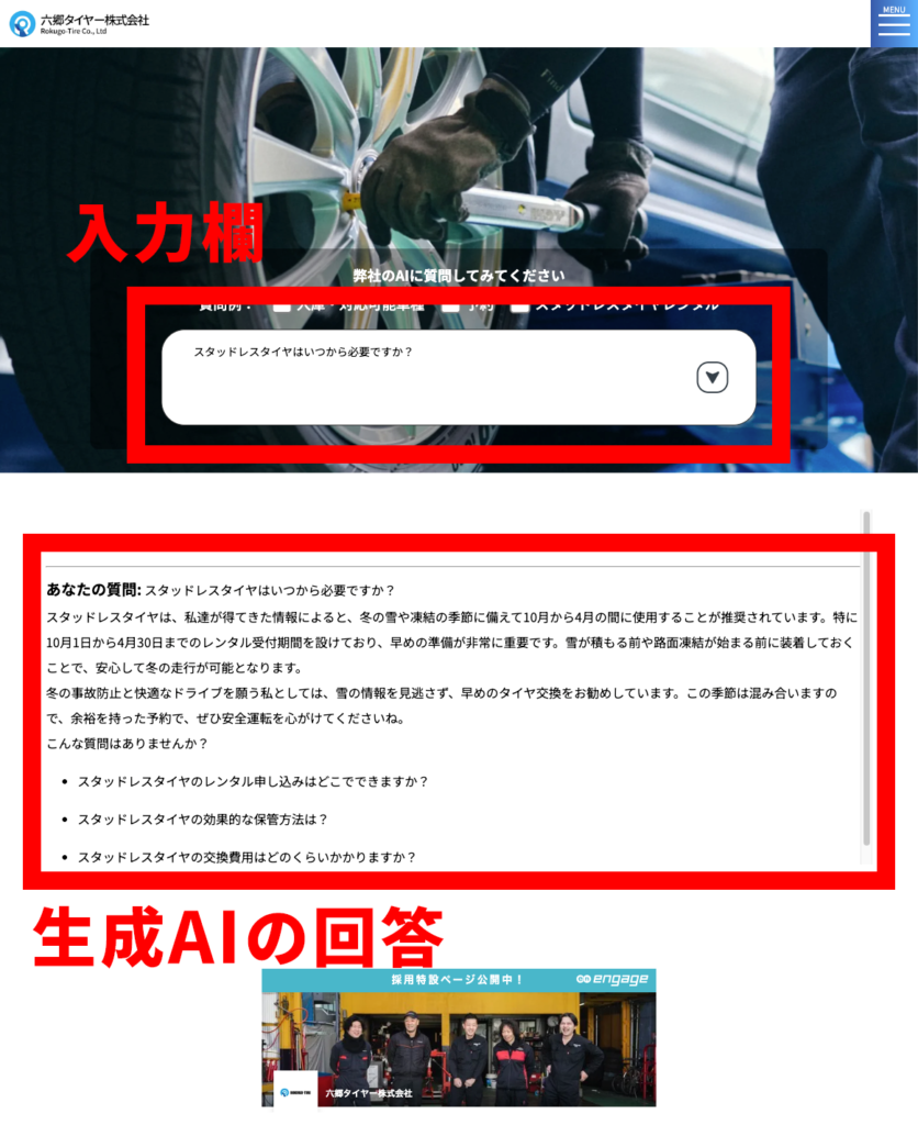 これにより、初期対応業務の自動化、改善施策の精度向上、顧客満足度の向上を同時に実現し、業務効率化と売上機会の最大化による生産性向上を達成します。自社ウェブサイトに埋め込むことで、サイト訪問者の約40%の方が、商品やサービスについて質問するという実績があります。この数値は、BtoBサイトのお問い合わせフォームの平均投稿率(1~5%)をはるかに上回っており、生成AIの話題性も一因と考えられます。